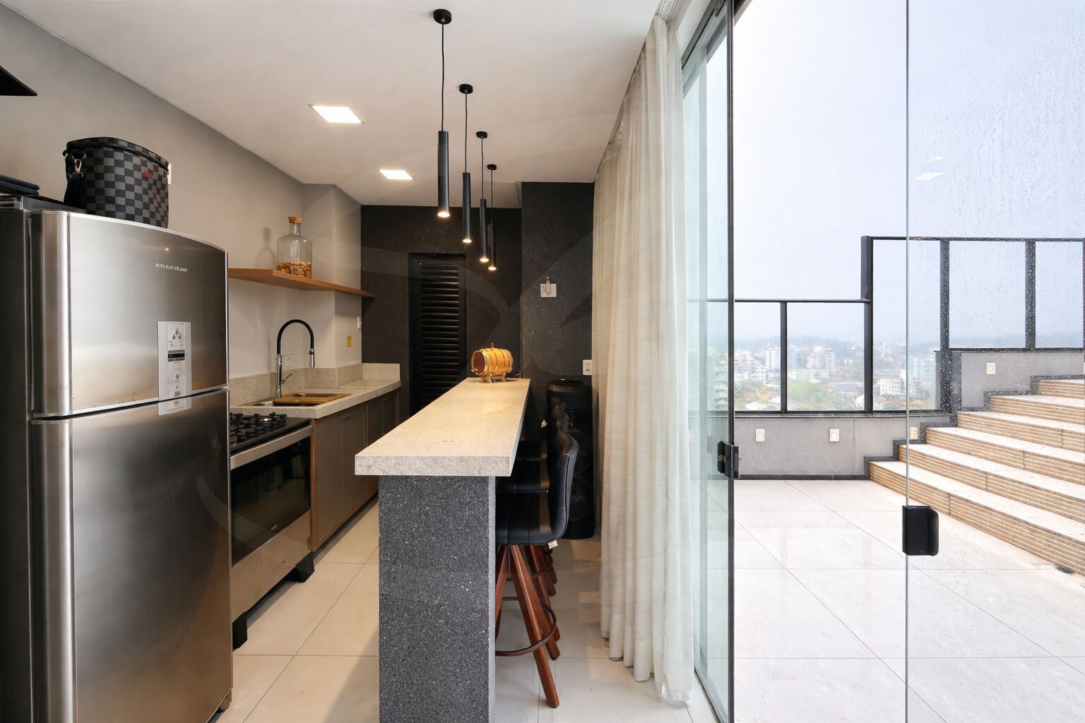 Essa cobertura será vendida com todos os móveis sob medida e alguns soltos.