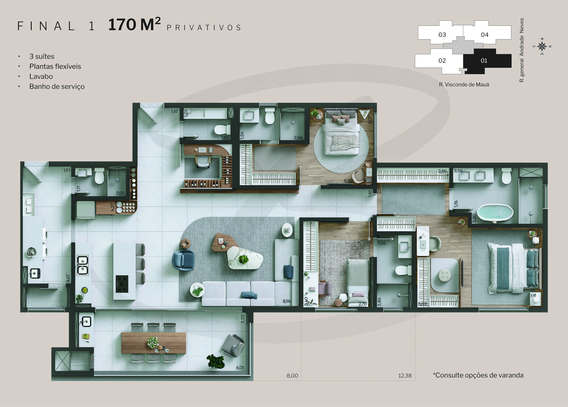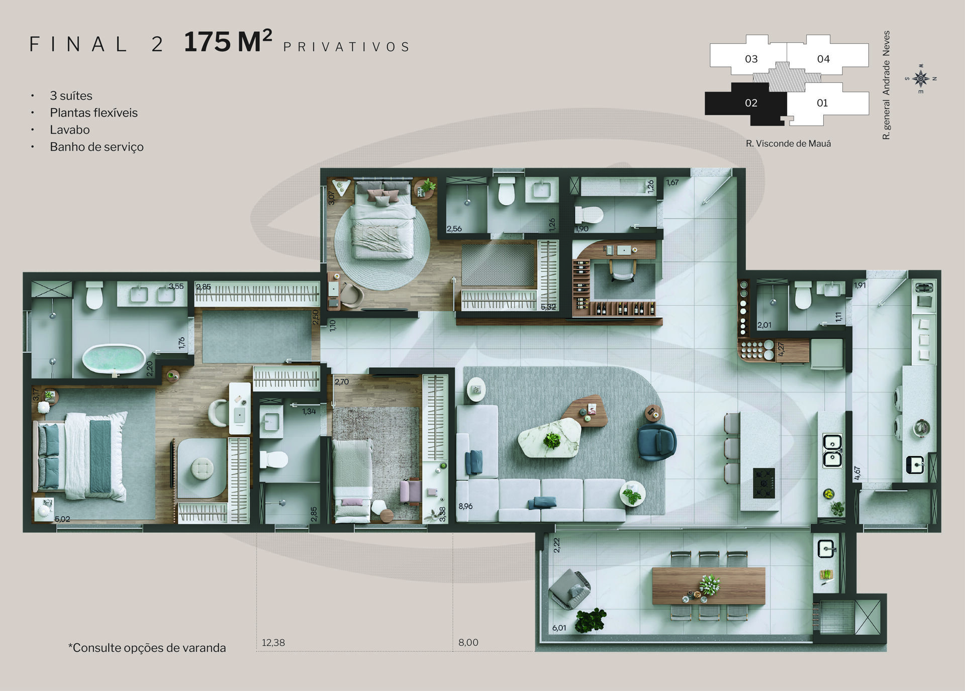- Apartamentos tipo com 3 ou 4 suítes – a partir de 148 m² privativos
